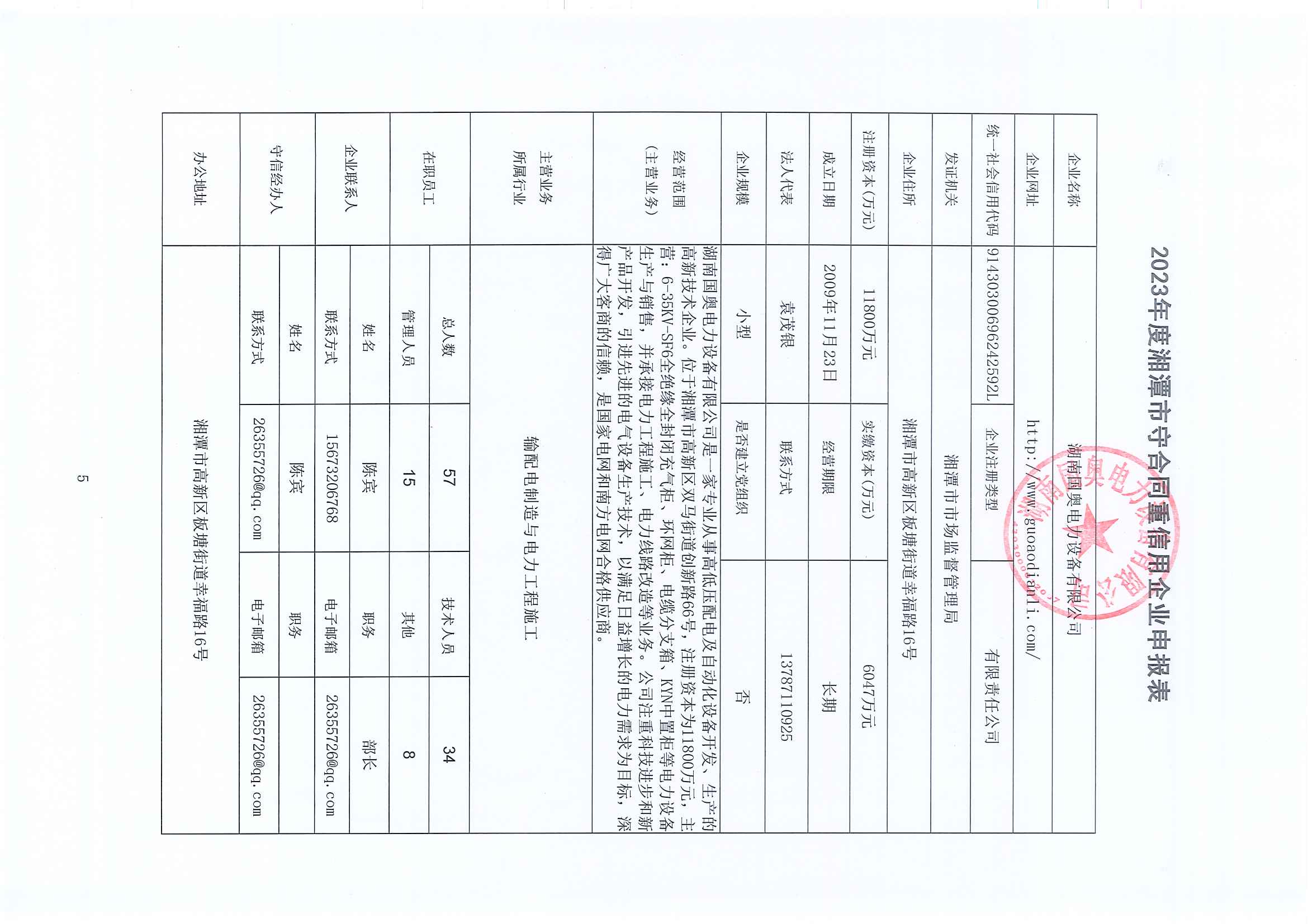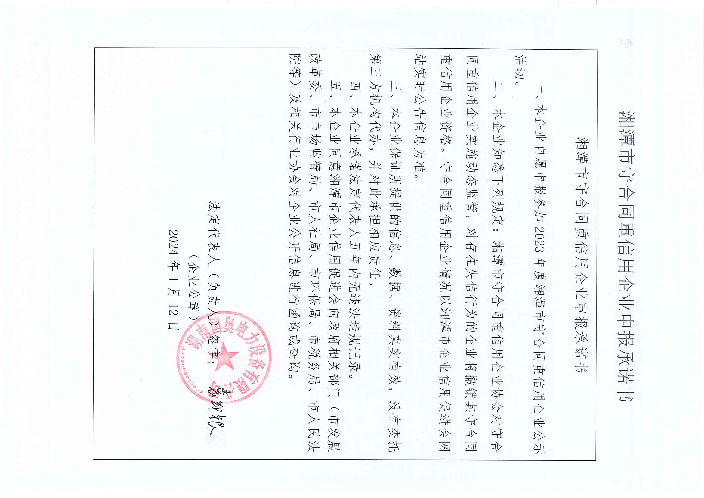 本企業(yè)根據(jù)《湘潭市守合同重信用企業(yè)申報規(guī)定》等編制 2023 年度企業(yè)信用報告書,并保證本報告書內容真實、準確、完整。