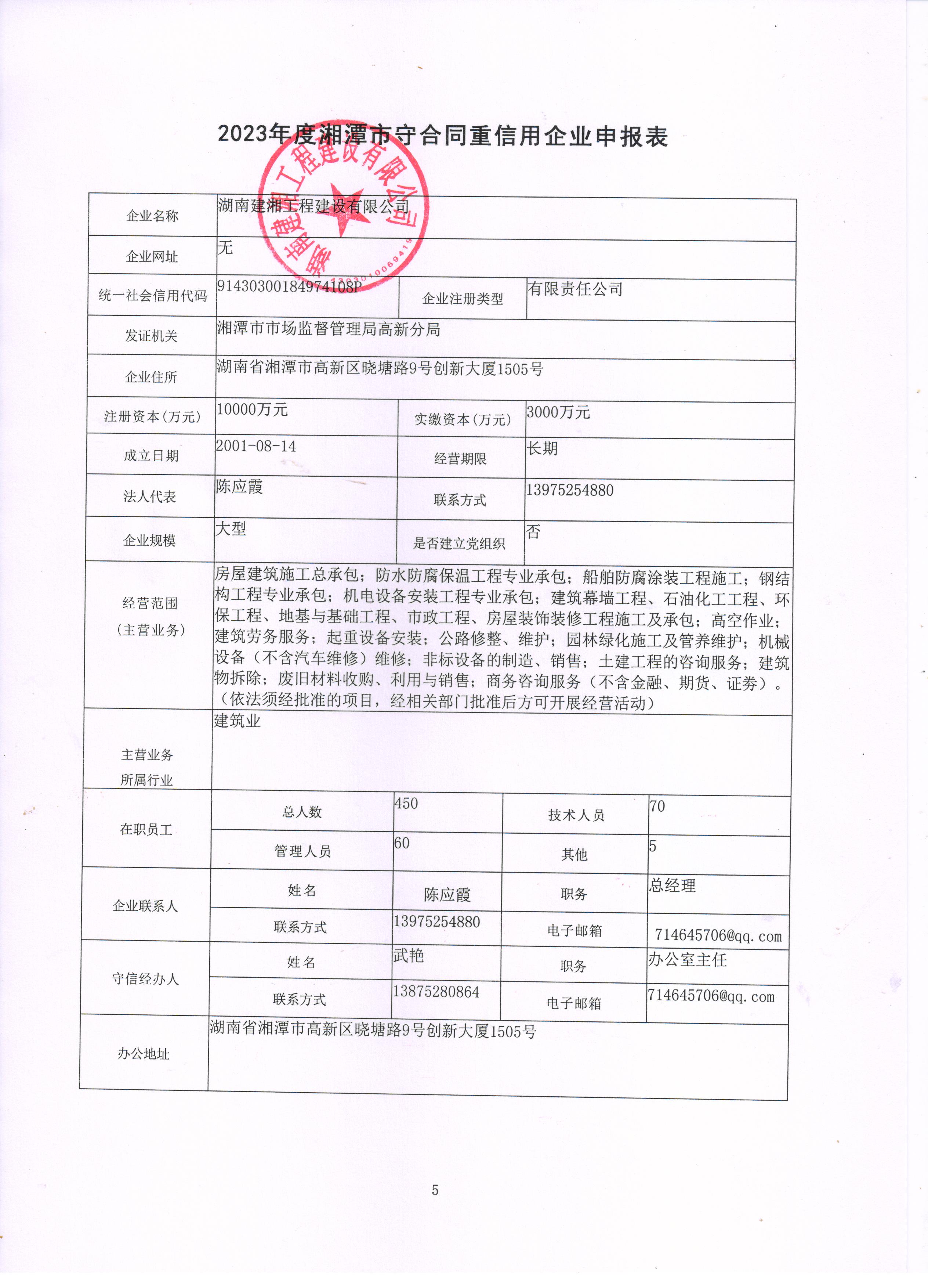本企業(yè)根據(jù)《湘潭市守合同重信用企業(yè)申報(bào)規(guī)定》等編制 2023 年度企業(yè)信用報(bào)告書(shū),并保證本報(bào)告書(shū)內(nèi)容真實(shí)、準(zhǔn)確、完整。