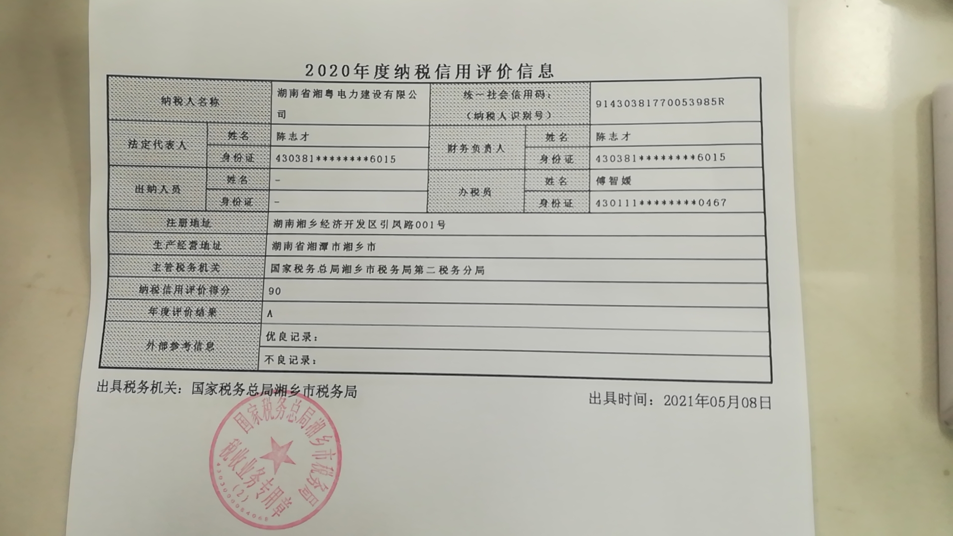 企業(yè)納稅信用等級報告: 納稅信用評價信息.jpg