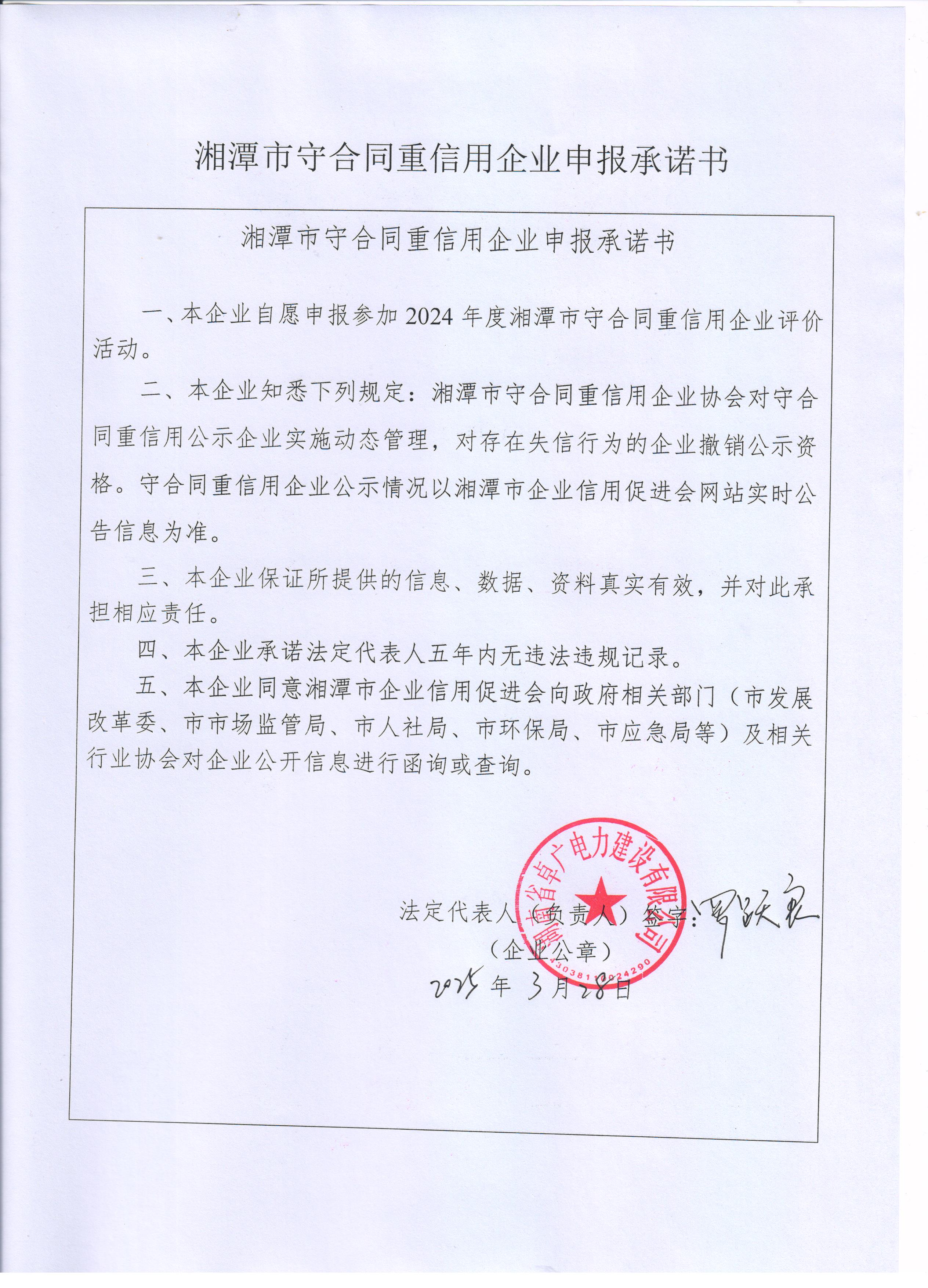 本企業(yè)根據(jù)《湘潭市守合同重信用企業(yè)申報規(guī)定》等編制 2024 年度企業(yè)信用報告書,并保證本報告書內(nèi)容真實、準(zhǔn)確、完整。