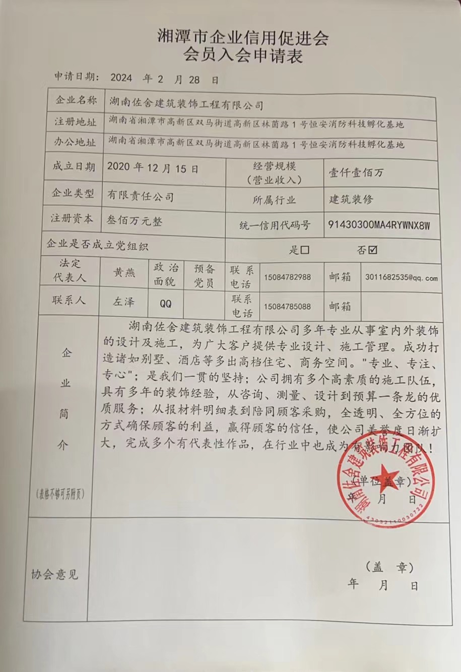| 名稱(chēng): 湖南佐舍建筑裝飾工程有限公司 | 登記證號(hào): 91430300MA4RYWNX8W | 法定代表人: 黃燕 | ||||||