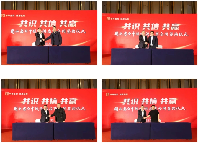 河北衡水老白干酒業(yè)股份有限公司總經(jīng)理趙旭東和箱盒供應(yīng)商代表無錫萬勝、酒瓶供應(yīng)商代表吳橋景博、瓶蓋供應(yīng)商代表宿遷凱曼、原料供應(yīng)商代表阜新淞航4家供應(yīng)商代表簽訂《戰(zhàn)略合作協(xié)議書》。協(xié)議規(guī)定了戰(zhàn)略供應(yīng)商優(yōu)先擁有幫扶等8項權(quán)利和6項義務(wù)。加強(qiáng)了雙方的緊密合作,確保了雙方互惠、共贏。