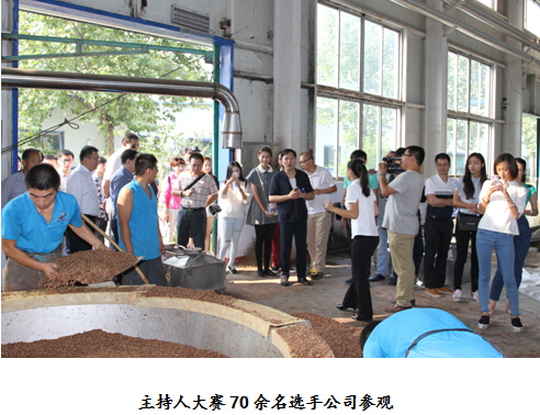 在大賽前,分別來(lái)自廣西、江蘇、山東、四川、甘肅、新疆、河北暨北方賽區(qū)、湖廣賽區(qū)、西北賽區(qū)等七大賽區(qū)的70余名選手及其它地市電視臺(tái)領(lǐng)導(dǎo)一同到我公司參觀。這些選手平均年齡22歲,來(lái)自全國(guó)各地,通過(guò)實(shí)地參觀,讓這些90后的新生力量了解衡水老白干的釀造工藝、品嘗衡水老白干原漿的甘冽,在分享他們切身體會(huì)的同時(shí),使得衡水老白干在更多年輕消費(fèi)者心中生根發(fā)芽……