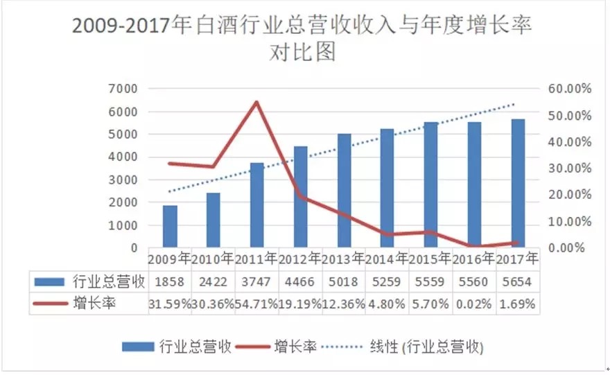 從數(shù)據(jù)來(lái)看,白酒整體行業(yè)發(fā)展呈上升趨勢(shì),在2011年達(dá)到頂峰,行業(yè)營(yíng)收增長(zhǎng)率一度超過50%,2012年,從限制“三公消費(fèi)”到“限酒令”再到“禁酒令”,白酒行業(yè)逐步走入下坡路。在這幾年期間,很多小酒企倒閉,白酒行業(yè)產(chǎn)量、收入逐漸走低,白酒行業(yè)進(jìn)入擠壓競(jìng)爭(zhēng)時(shí)代。