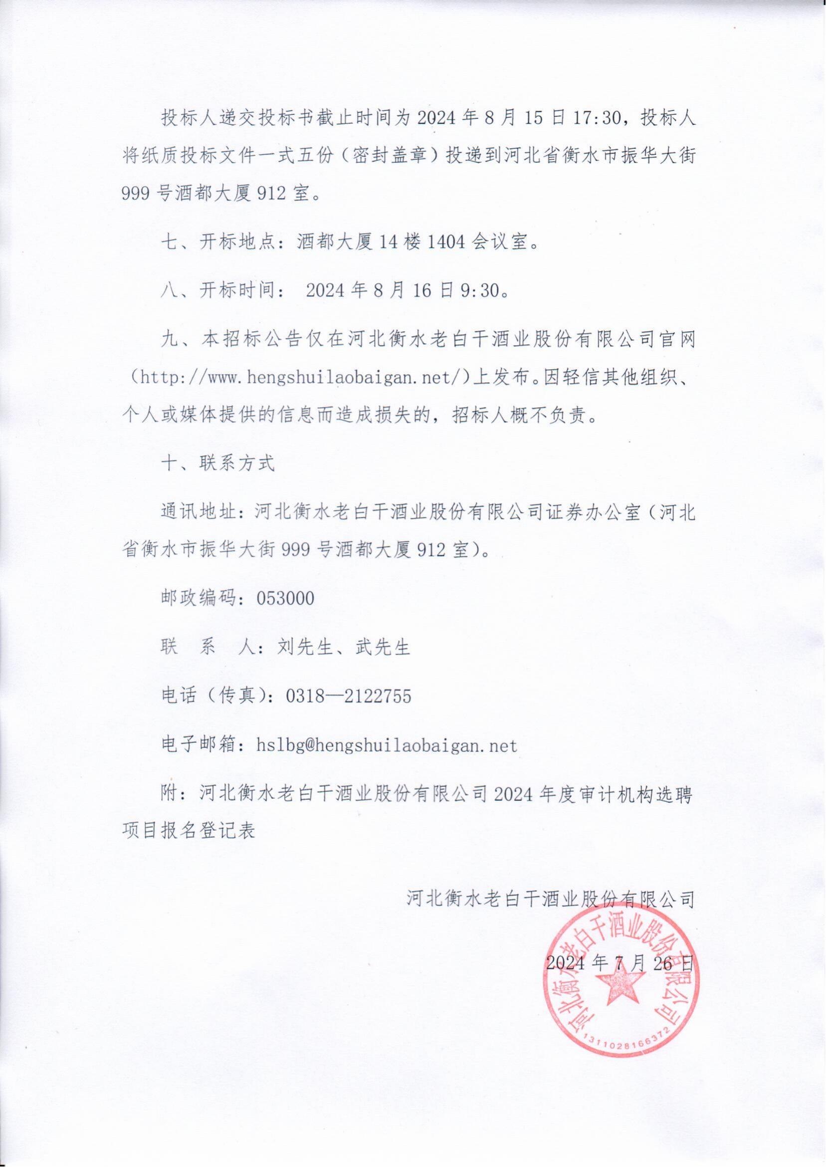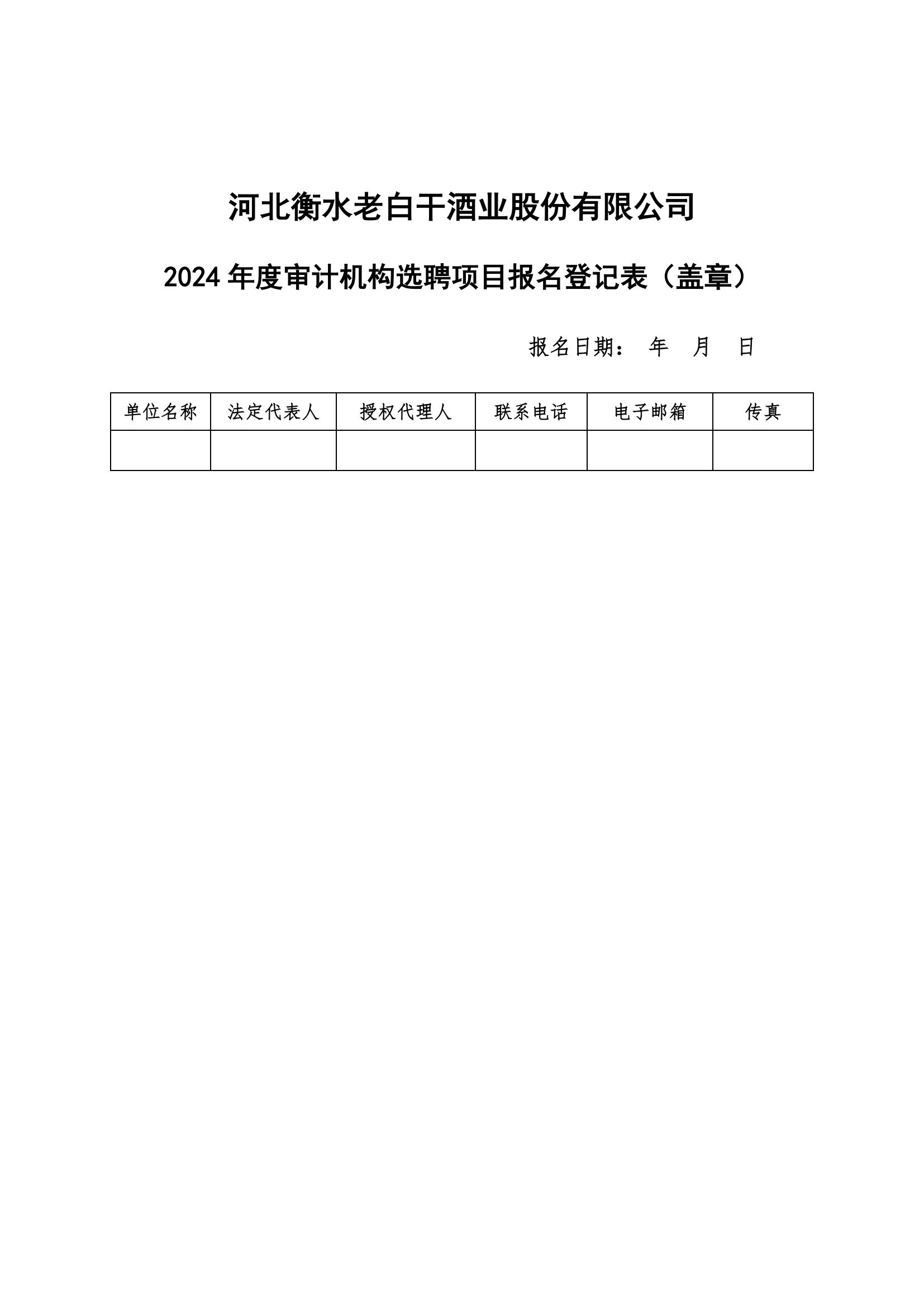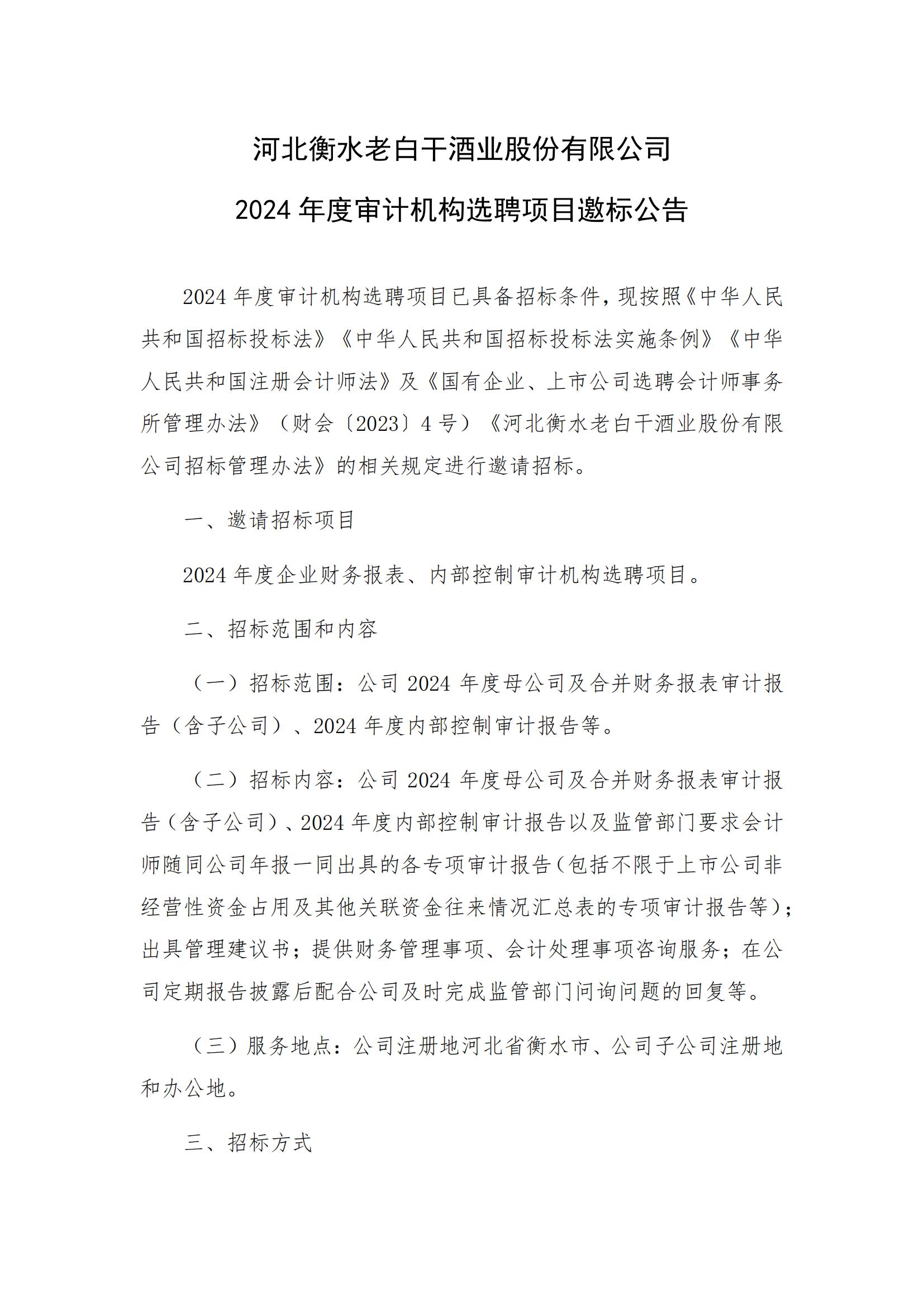 河北衡水老白干酒業(yè)股份有限公司選聘事務(wù)所招標文件:鏈接:https://pan.baidu.com/s/11htZyjz0XEt3Q-RyRu5GzQ