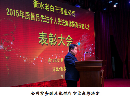 衡水老白干酒業(yè)公司 2015年質(zhì)量月先進(jìn)個(gè)人先進(jìn)集體暨高技能人才 表彰大會(huì)隆重召開