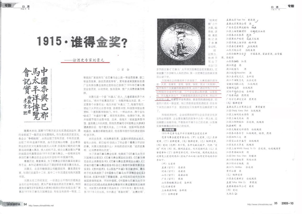 酒史專家還原1915甲等金獎(jiǎng)?wù)嫦?/h1>