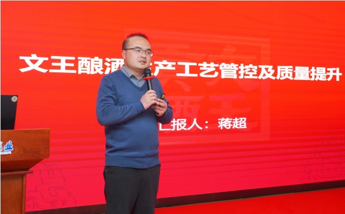 文王生產(chǎn)釀酒部總監(jiān)蔣超對(duì)“生產(chǎn)工藝管控及質(zhì)量提升”展開(kāi)專(zhuān)題講座。蔣超總監(jiān)從技術(shù)創(chuàng)新、設(shè)備升級(jí)、人才培養(yǎng)等方面,闡述了文王酒業(yè)在提升產(chǎn)品品質(zhì)和精細(xì)化管理方面的探索與實(shí)踐。