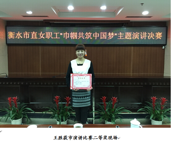 2014年12月26日下午 ,衡水市婦聯(lián)舉辦的“巾幗共筑中國夢”演講比賽決賽隆重舉行,本次比賽,由預賽中選出的來自市直各行各業(yè)的40名優(yōu)秀選手參加,選手們展示了在各自行業(yè)中建功立業(yè)、無私奉獻的風采,可謂亮點紛呈、精彩薈萃。