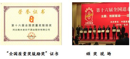 2016年11月10日,公司在中國質(zhì)量協(xié)會組織的第十六屆全國追求卓越大會頒獎(jiǎng)儀式上,榮獲第十六屆“全國質(zhì)量獎(jiǎng)鼓勵(lì)獎(jiǎng)”,全國僅有18家企業(yè)獲此獎(jiǎng)項(xiàng)。