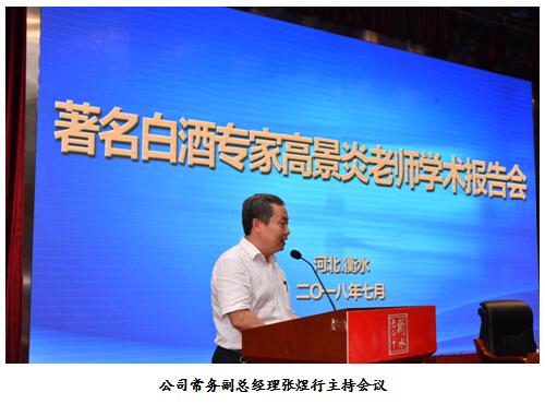 2018年7月12日,著名白酒專家高景炎老師學(xué)術(shù)報(bào)告會在酒都大廈二樓多功能廳隆重舉行。總經(jīng)理王占剛攜酒業(yè)公司副科級以上管理人員,省評酒委員、國家評酒委員,衡水老白干大學(xué)管理系學(xué)員,板城、文王、武陵、孔府家營銷、技術(shù)管理人員代表200余人參加了報(bào)告會。報(bào)告會由酒業(yè)公司常務(wù)副總經(jīng)理張煜行主持。