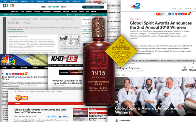 近日,衡水老白干的兩款產(chǎn)品在2018世界烈酒大賽 (2018 Global Spirit Awards)上獲最高獎——雙金獎,衡水老白干1915更被評為“全場最佳”。包括NBC(美國廣播公司)在內(nèi)的全球300余家媒體爭相對此次獲獎進行了報道。